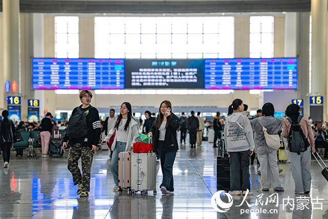 呼和浩特东站旅客正在候车厅候车。杨颐摄
