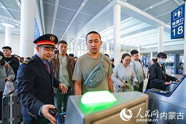 旅客在呼和浩特东站排队通过进站闸机。杨颐摄